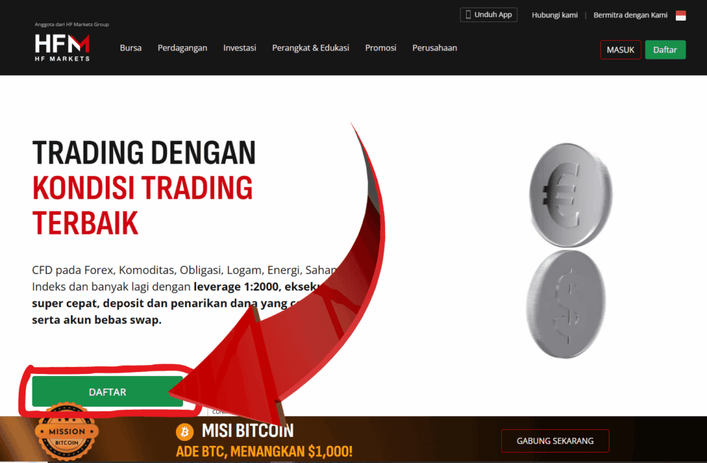 Langkah 1: Masuk ke Halaman Pendaftaran HF Markets
