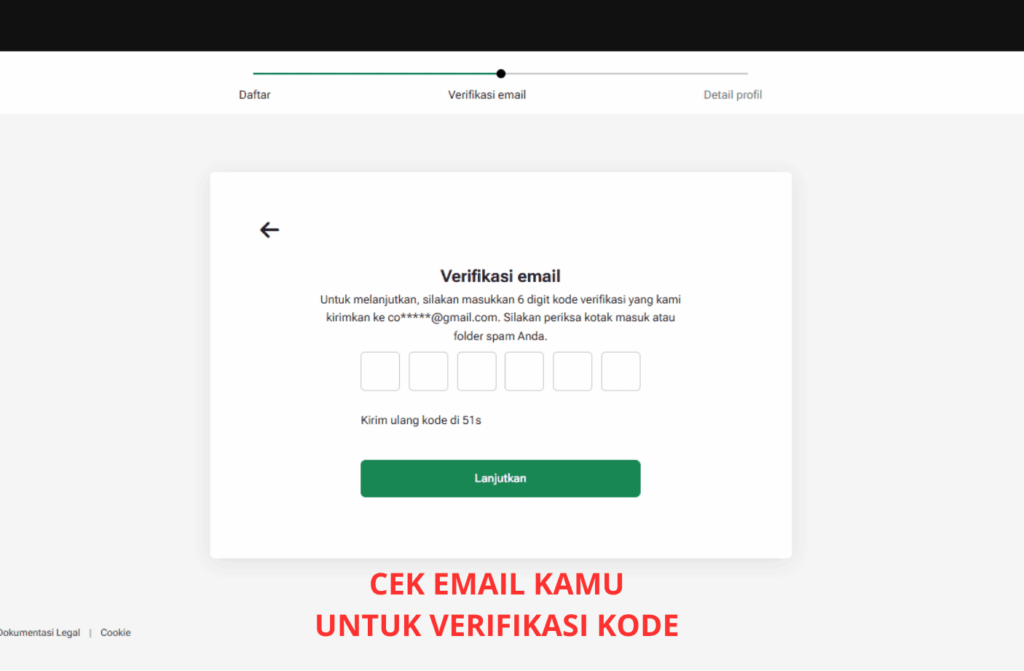 Setelah isi form pendaftaran, Anda bakal dapat kode via email. Tinggal masukkan kode itu di kolom verifikasi yang muncul di layar.
